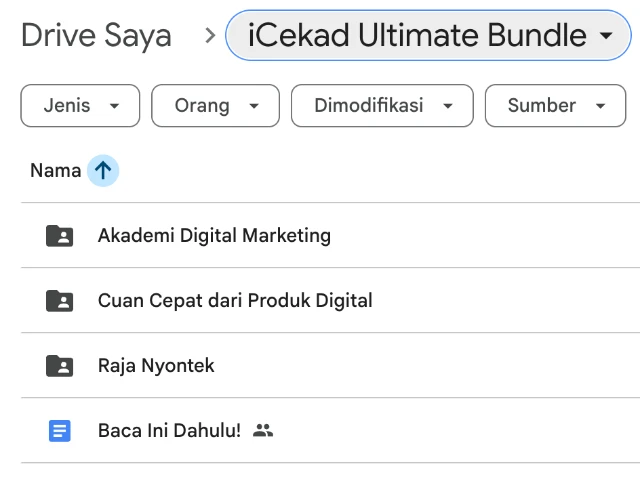 contoh folder gdrive yang kamu dapat setelah beli bundling package ini :